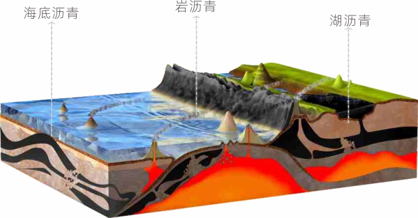 原油經(jīng)過通過億萬年的地殼運(yùn)動(dòng)作用,在高溫、高壓、觸媒等綜合作用下自然形成的地瀝青類物質(zhì),含有一定比例無機(jī)物,按形成環(huán)境不同可分為巖瀝青、湖瀝青、海底瀝青。