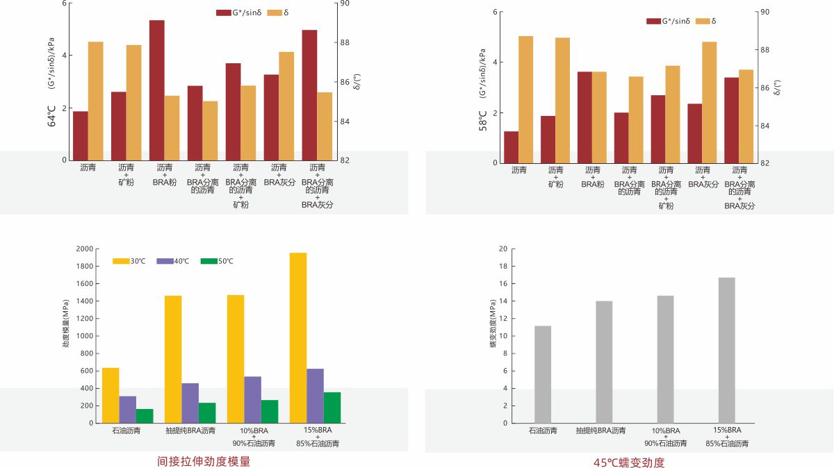 天然瀝青無機(jī)物比表面積更大,孔隙更多,因此和瀝青的交互作用更強(qiáng)。