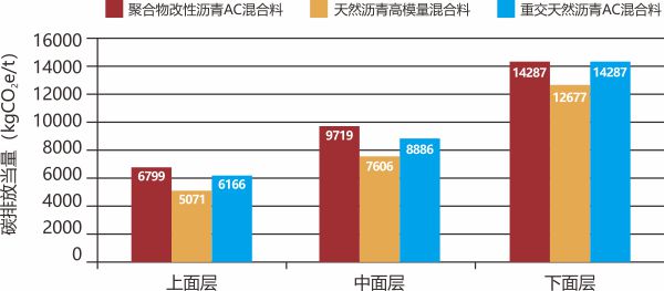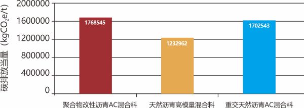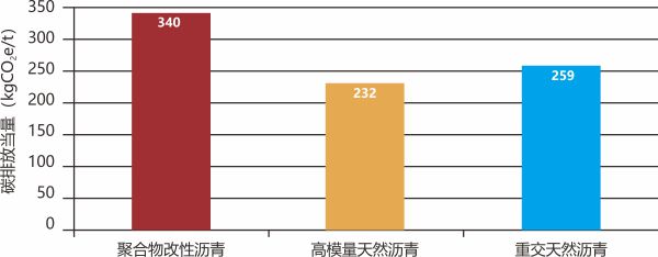 高模量天然瀝青HMB的單噸碳排放值比常規(guī)聚合物改性瀝青低21.2%;